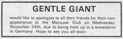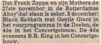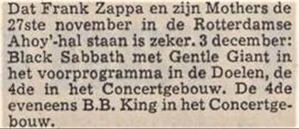 Notice for canceled Dutch gigs with Black Sabbath Dec. 1971