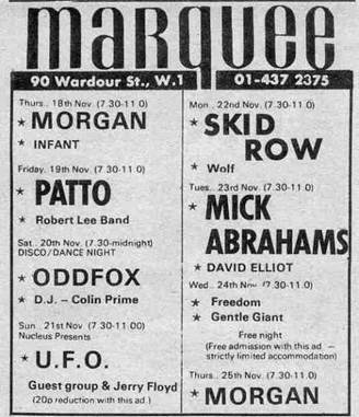advertised in Melody Maker, was the second one. The date of the other gig is not known and