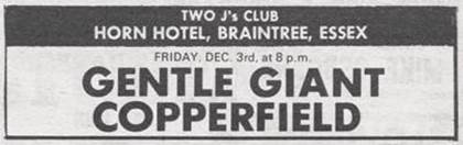 club was located in the Horn Hotel. They shared the bill with Copperfield. At one point